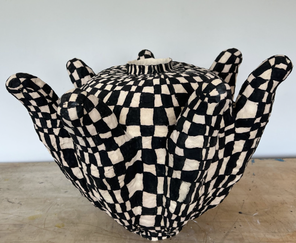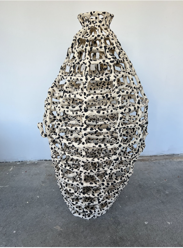 Interested in time and labor, Brittany Mojo investigates the histories of gendered work through the manipulation of material. She describes her ceramic practice as cumulative action, creating movement through repetitive mark-making and by uniting individual objects within a space.