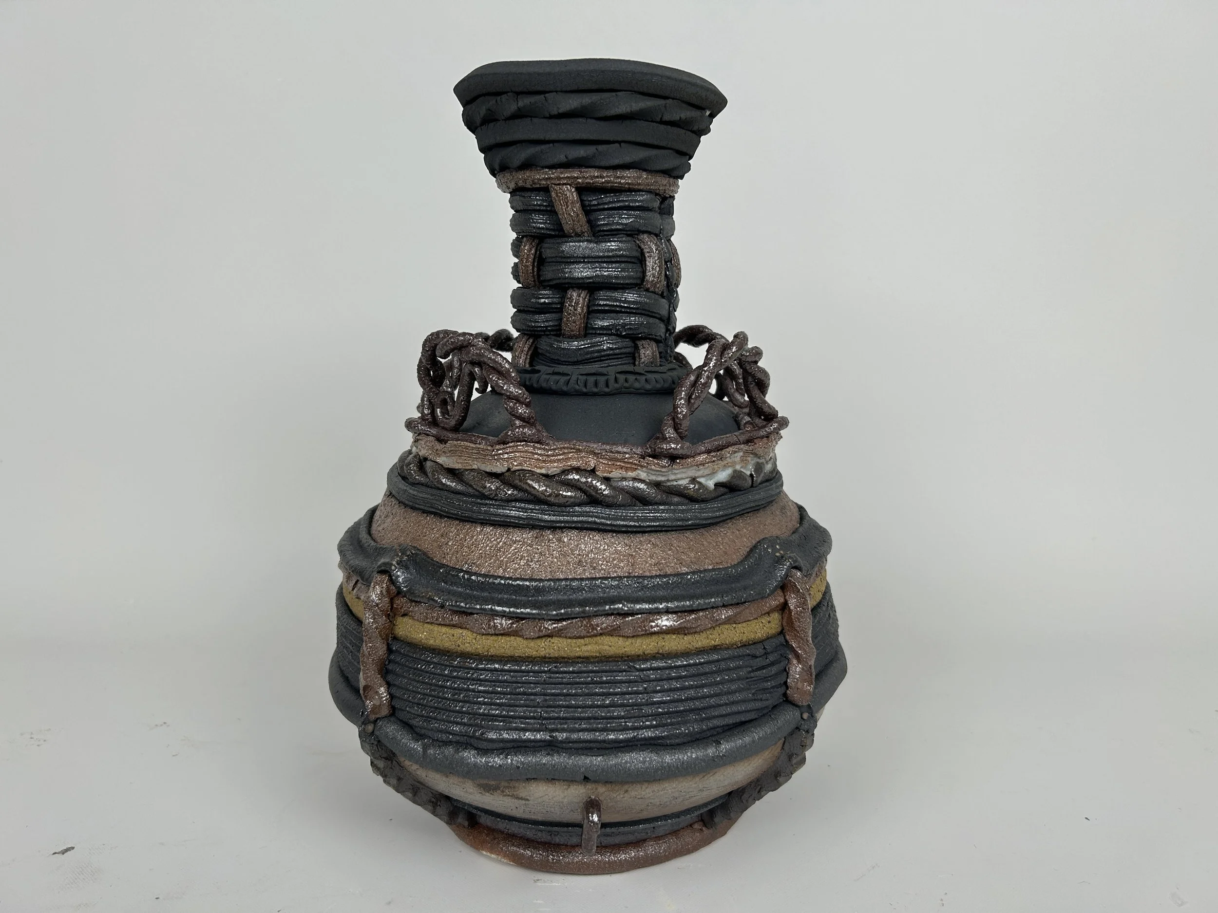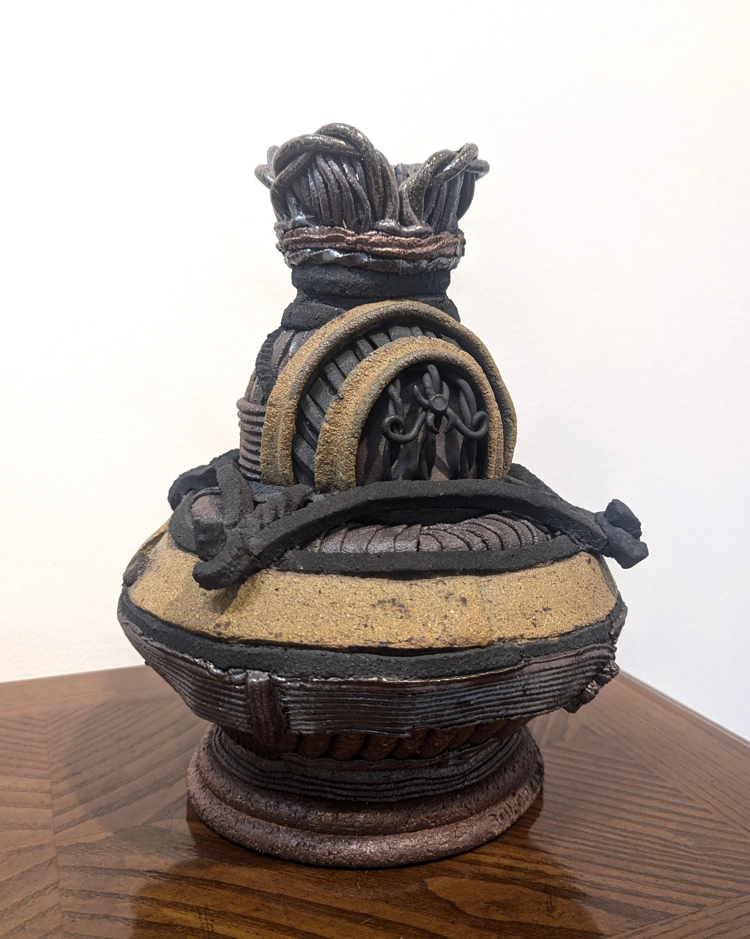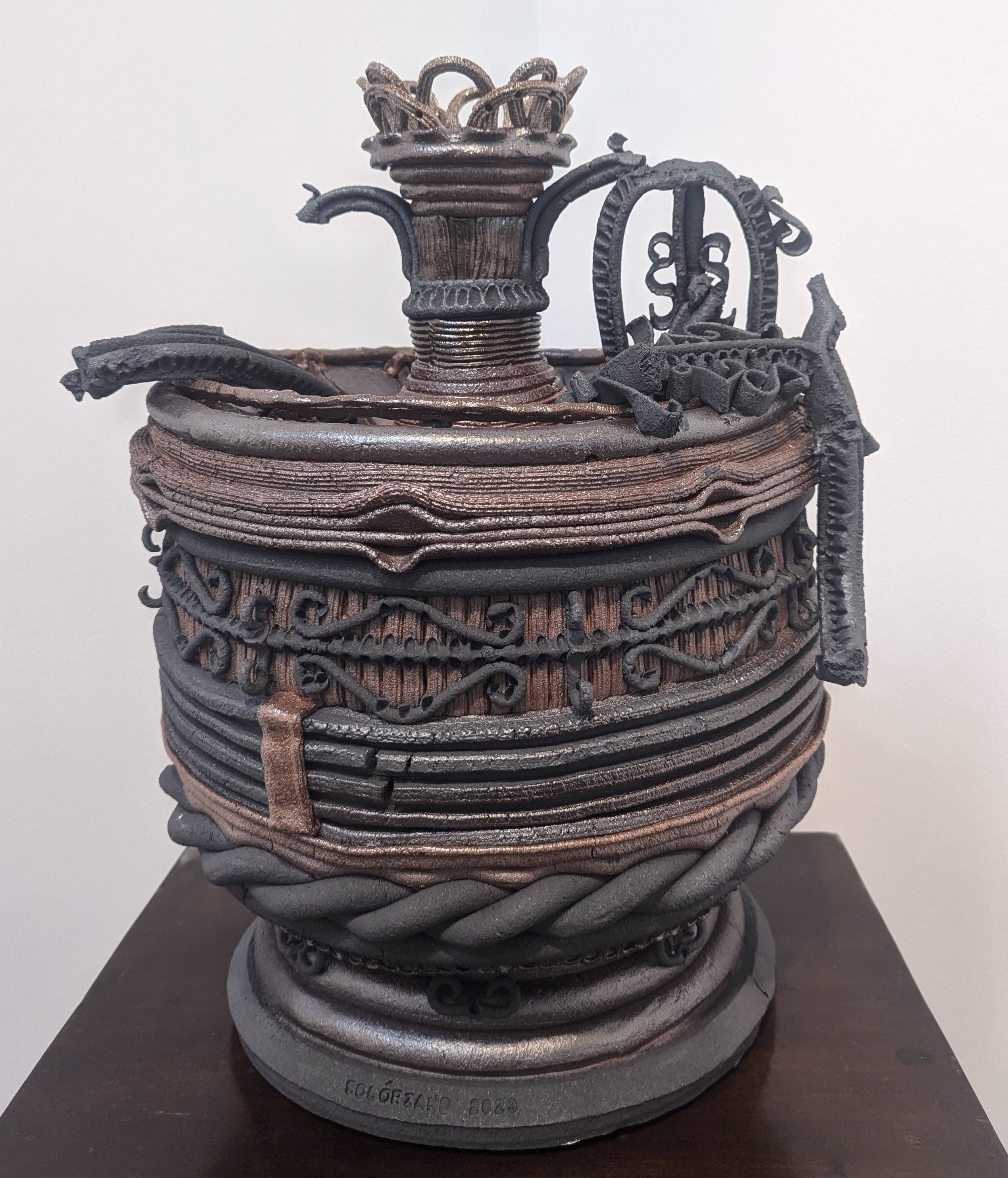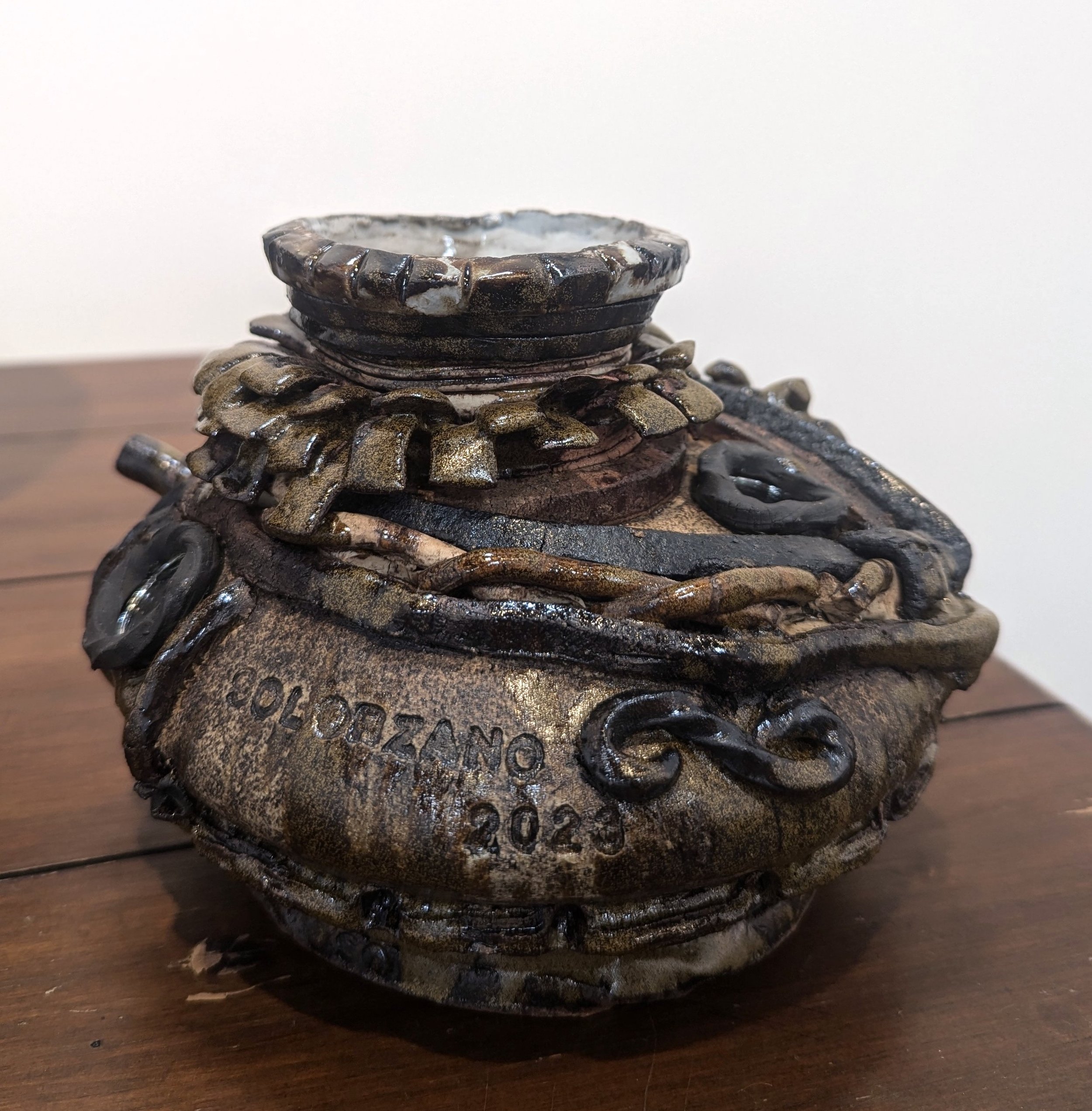 She obtained her Bachelors in Fine Arts with an emphasis in Ceramics from California State University, Long Beach, and her Masters in Fine Arts from Claremont Graduate University. Currently, Solórzano holds the position of Lead Studio Technician at Still Life Studio a local pottery studio in the Arts District of Downtown Los Angeles where she also teaches advanced hand-building classes. She was an artist in residence at AMOCA from May to December in 2023.