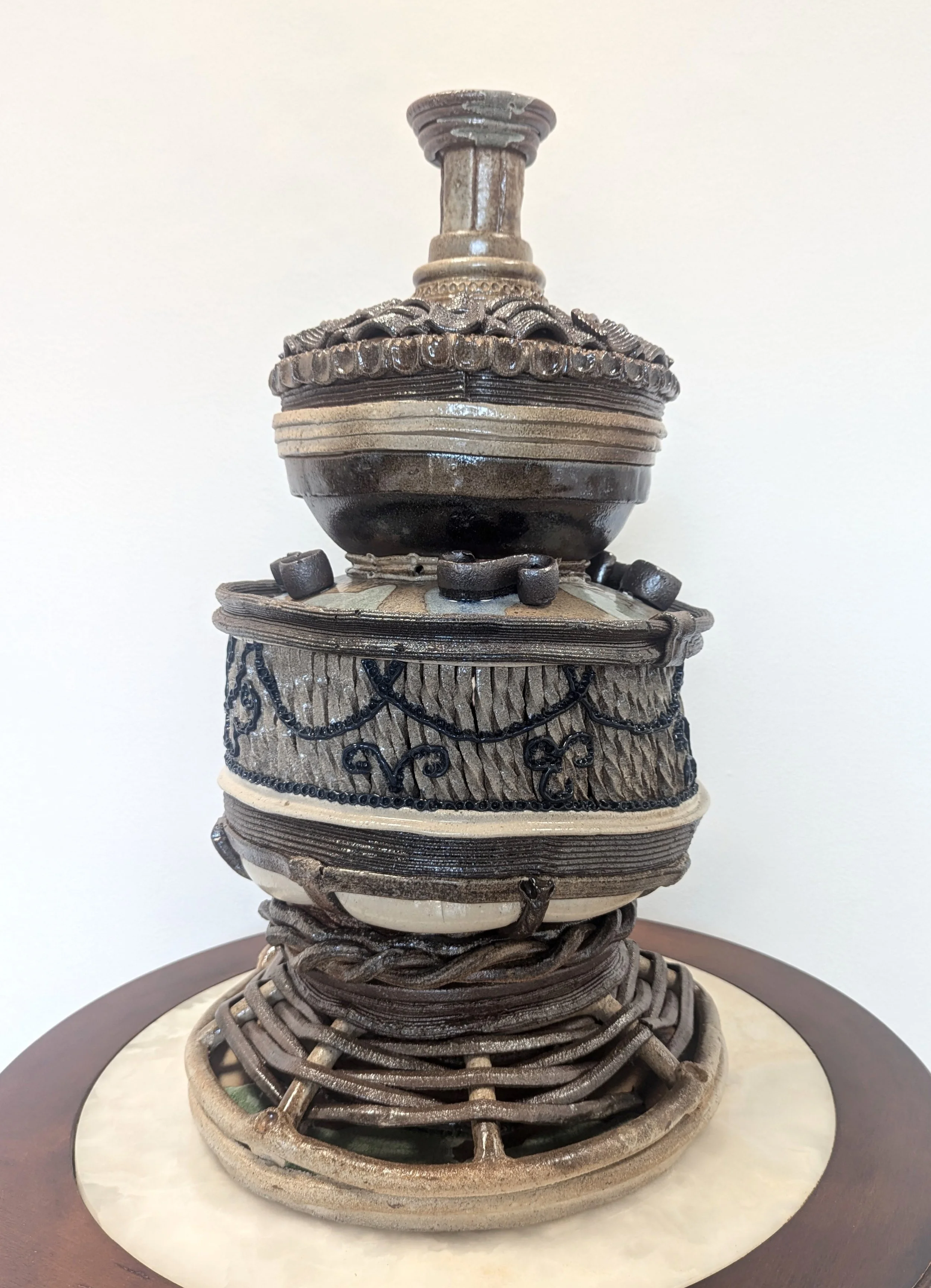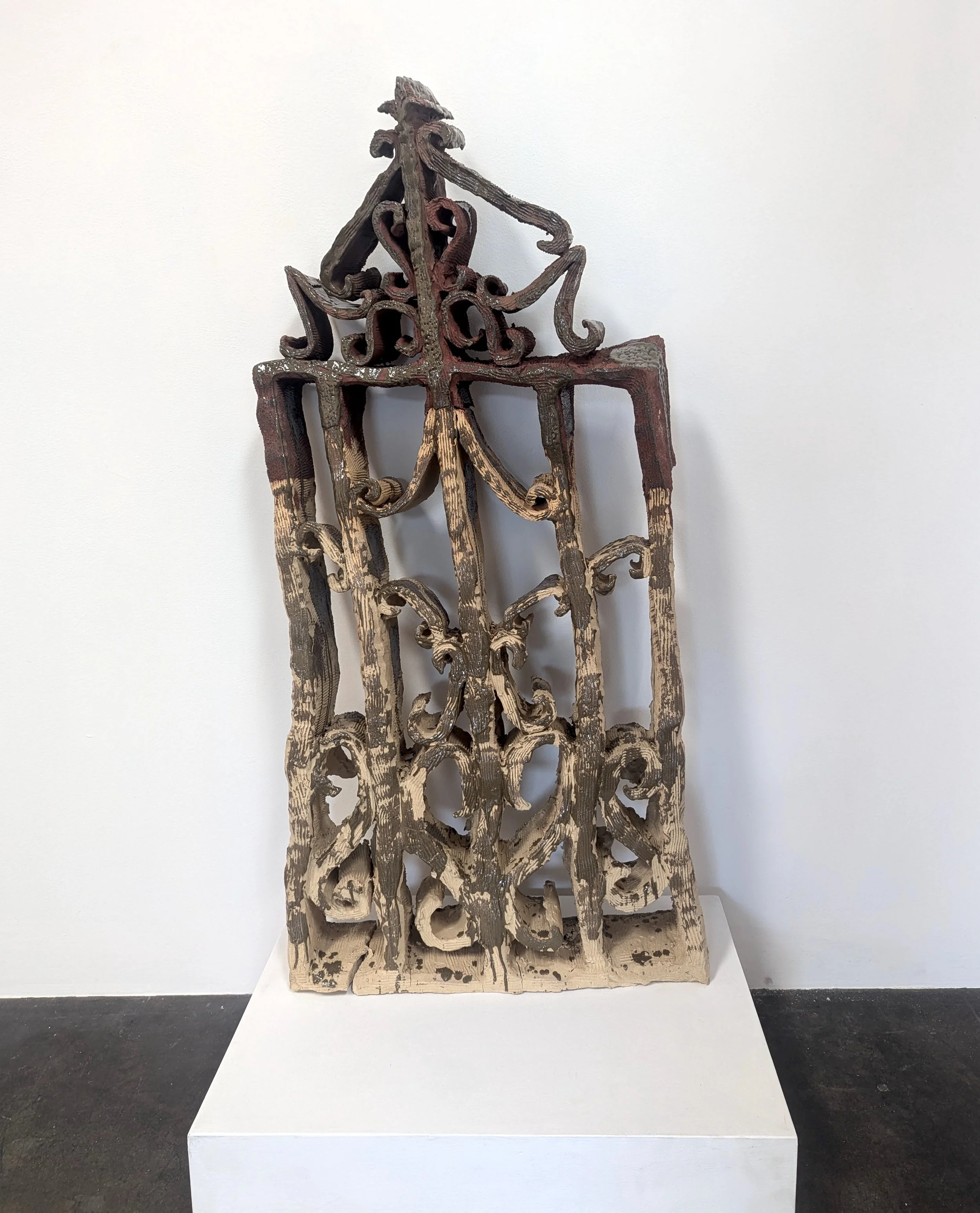 Claudia V. Solórzano is a Los Angeles-based artist working in ceramic sculpture. She utilizes ceramic materials to examine socio-economic stratification and domesticity through encounters with architectural motifs from the Los Angeles urban landscape. Her sculptures operate as portraits that navigate race, class, preservation, and the ephemerality of communities confronted with gentrification and sociopolitical boundaries.