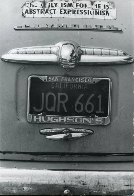 license plate and bumper sticker, c. 1965