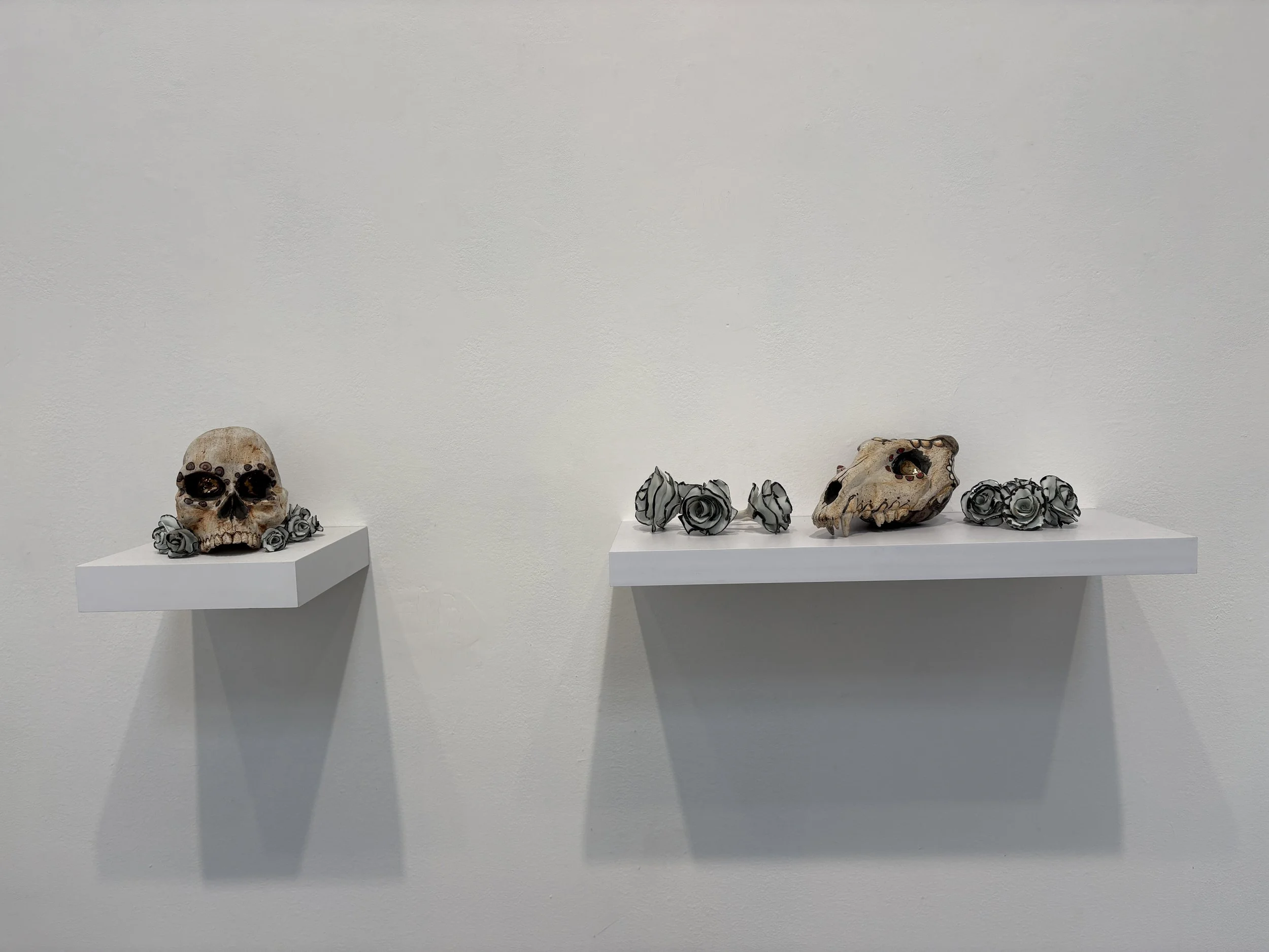 In his debut solo exhibition at Craig Krull Gallery, Jorge A. Jiménez Jr. makes visceral offerings: his clay likeness holds flowers; an anatomical heart blooms with a marigold; and a pair of lungs seems to grow roses. Bodies seem to have turned inside-out, revealing their delicate pieces and tender interiors.