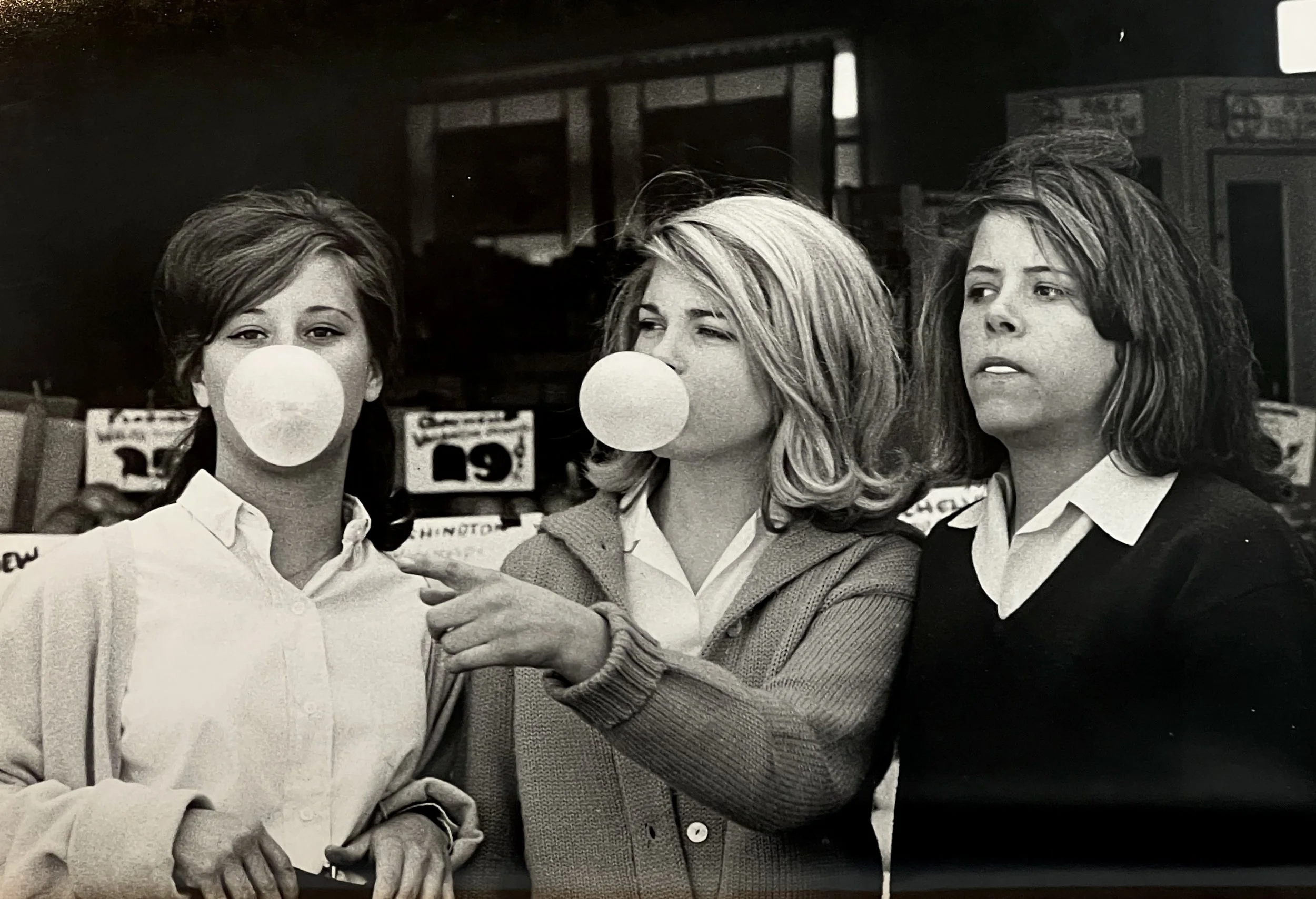 Julian Wasser passed away in 2023, a couple months shy of his 90th birthday. The exhibition, “Pop and Burn” at Craig Krull Gallery celebrates our long relationship with this hard-boiled, unfiltered and often cranky photographer who drove his ‘65 Mustang convertible, kept his press pass around his neck, and followed news leads with pagers on his belt till smart phones changed the way we do everything. “Pop and Burn” is the snap and sizzle of the old cameras and flash bulbs that Weegee used, and that Wasser started with. It is the signature poof and glare in the face of the newsworthy. Wasser not only inherited Weegee’s gift of timing but, I believe, he took his bold tabloid look to a new level. Wasser’s images are often high contrast, with deep blacks and bright whites, like bold newspaper headlines with striking compositions that are stunning given his split-second decision making. “Pop and Burn” is also a reference to the Pop culture in which he was immersed, photographing the Jackson 5 when they were children, and the often-tragic burn of life in the limelight. But many of the images in this exhibition are of unknown young people at nightclubs, working in dress shops, drinking soda pop, blowing big chewing gum bubbles and smoking cigarettes. In fact, the working title of this exhibition was simply Bubble Gum and Cigarettes, but the image of Aggie Underwood, the tough, hard-nosed editor of the Herald-Express shooting her pistol at the news desk, with smoke rising from the gun, required a more dynamic approach.