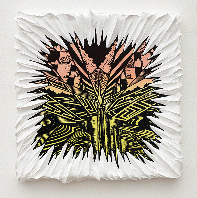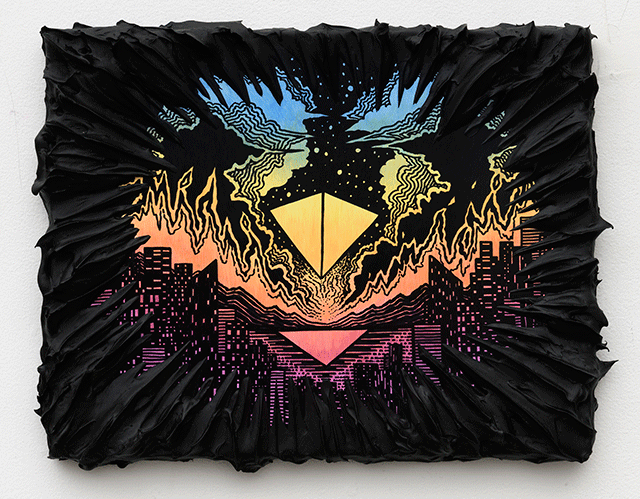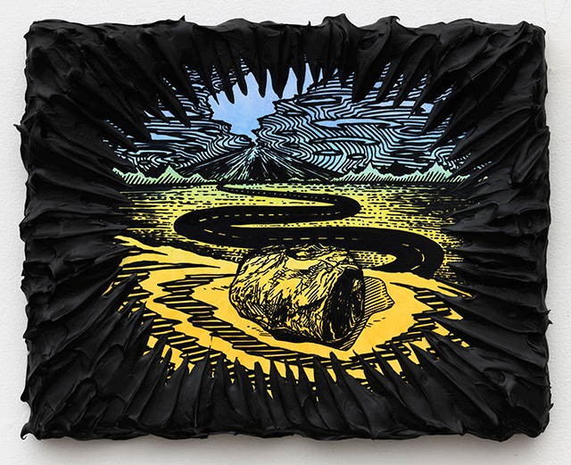 Kelly Berg was raised in Minneapolis, Minnesota and is currently based in Los Angeles, California. Berg’s paintings and mixed media sculptural works explore the ever-shifting nature of our world. Known for her compositions depicting the movement of tectonic plates, volcanic eruptions, and dramatic geologic formations, Berg’s works offer a new perspective within the context of contemporary landscape and the sublime.