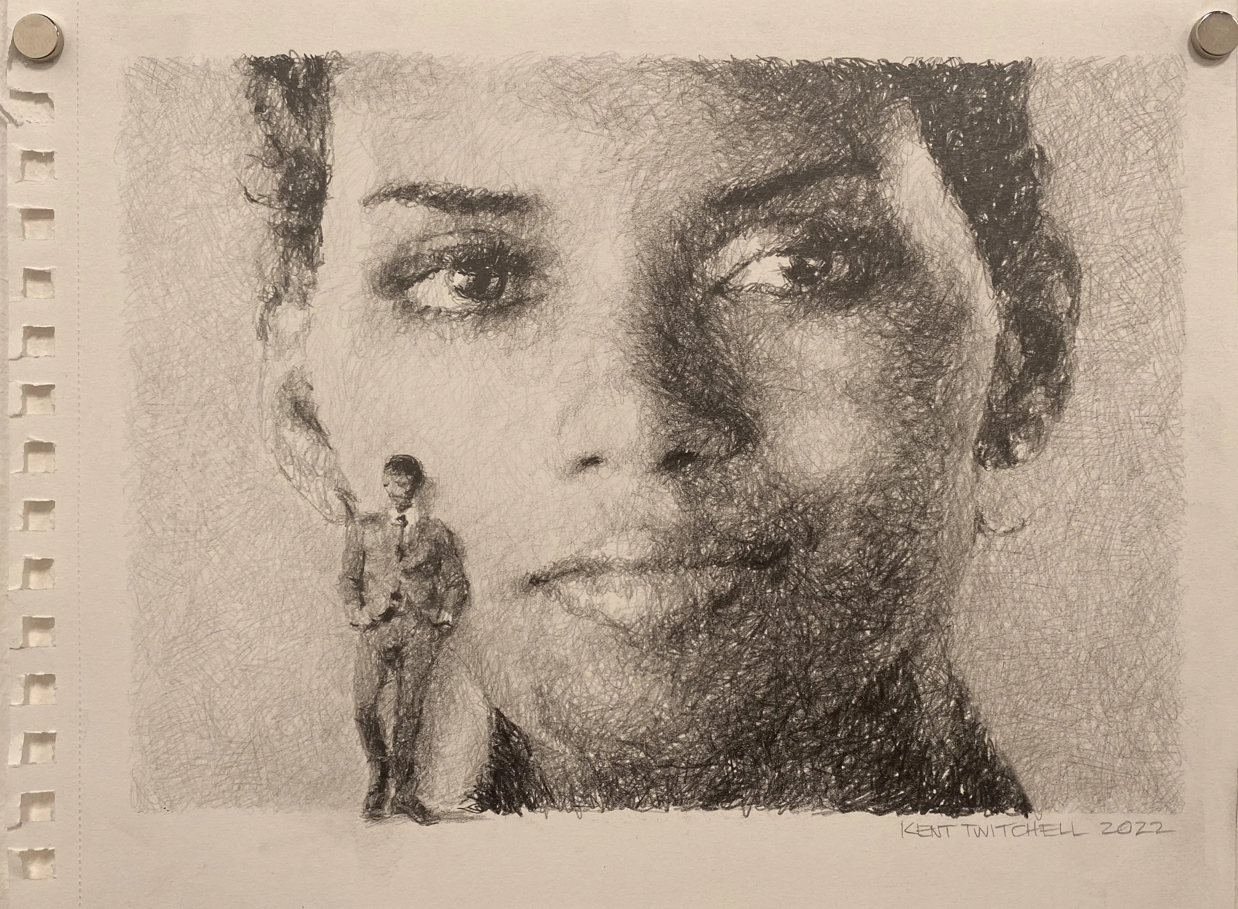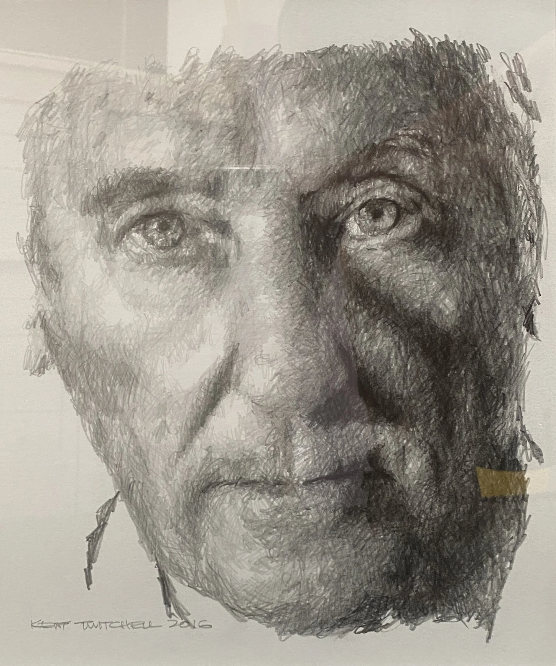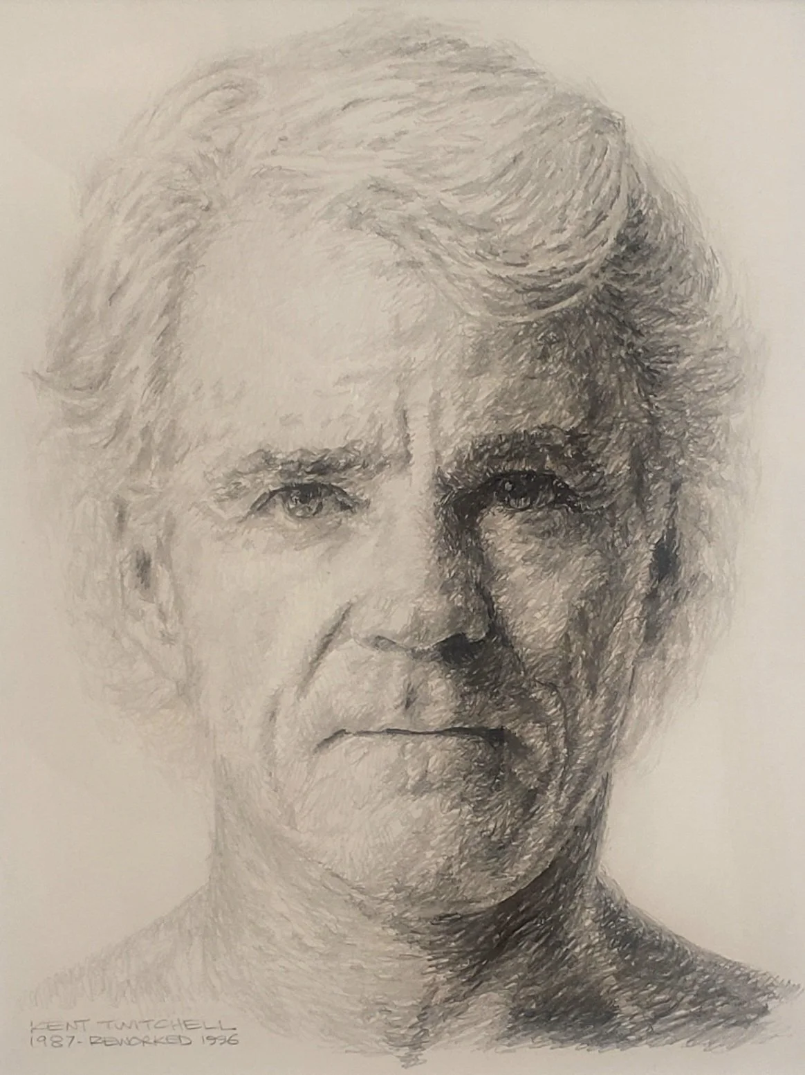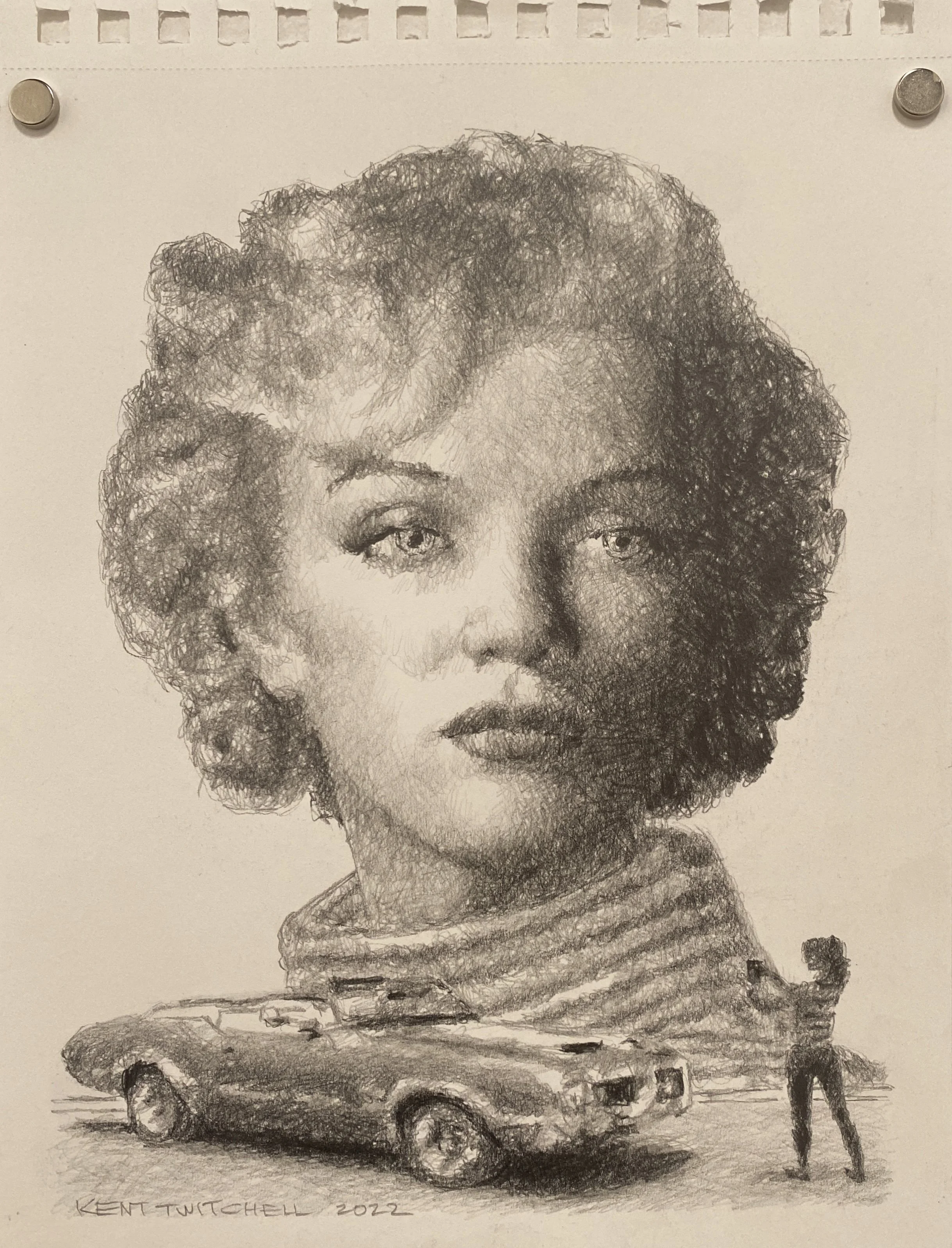 While studying at Cal State LA in 1971, Kent Twitchell painted his first mural—a portrait of Steve McQueen—on the side of a friend’s home. Over the course of the next 50 years, Twitchell would go on to paint many murals around Southern California. His iconic murals include the Bride and Groom on Broadway, the downtown Ed Ruscha Monument and the opposing portraits of Lita Albuquerque and Jim Morphesis at the 7th street freeway underpass downtown.