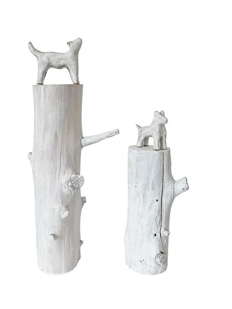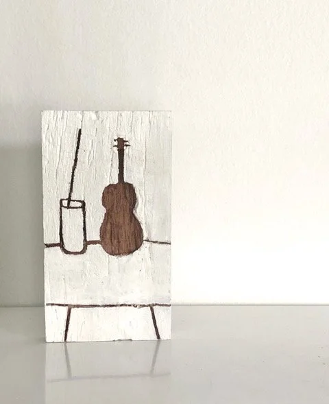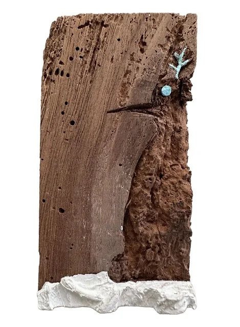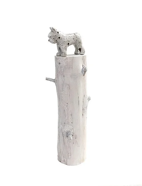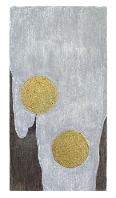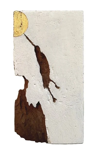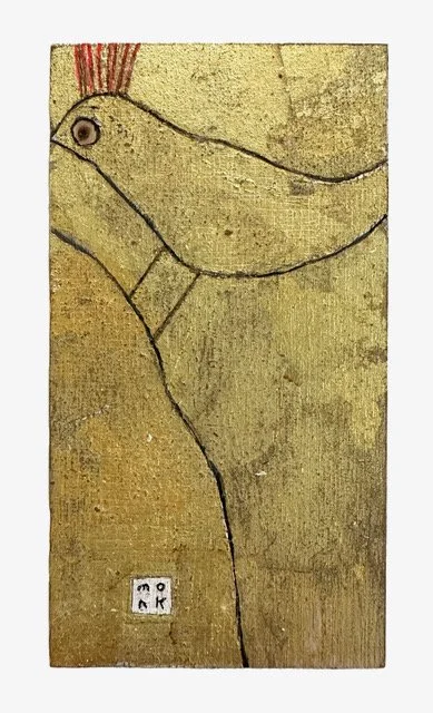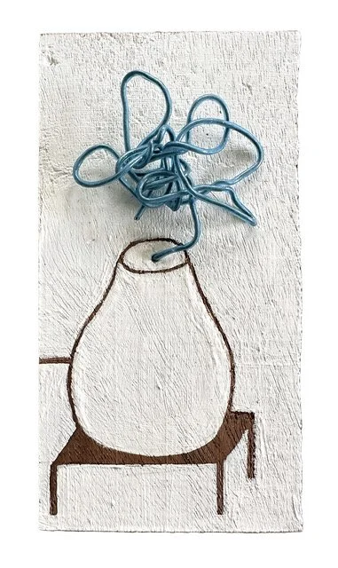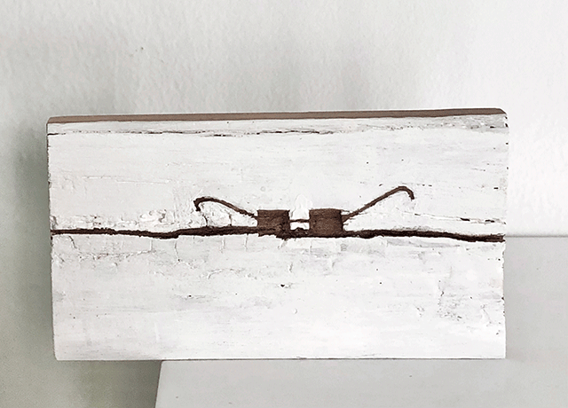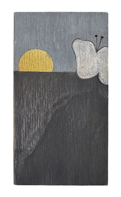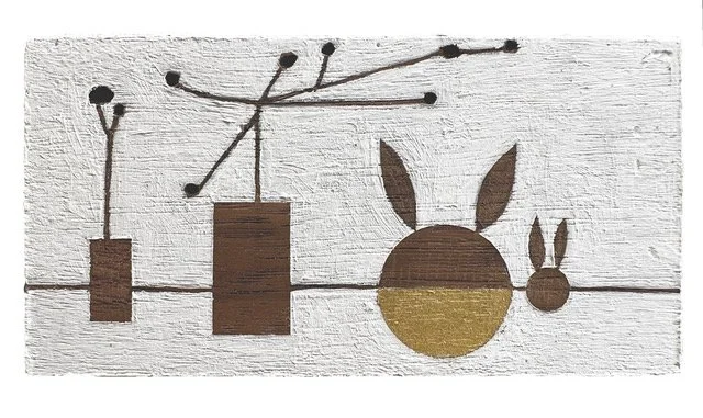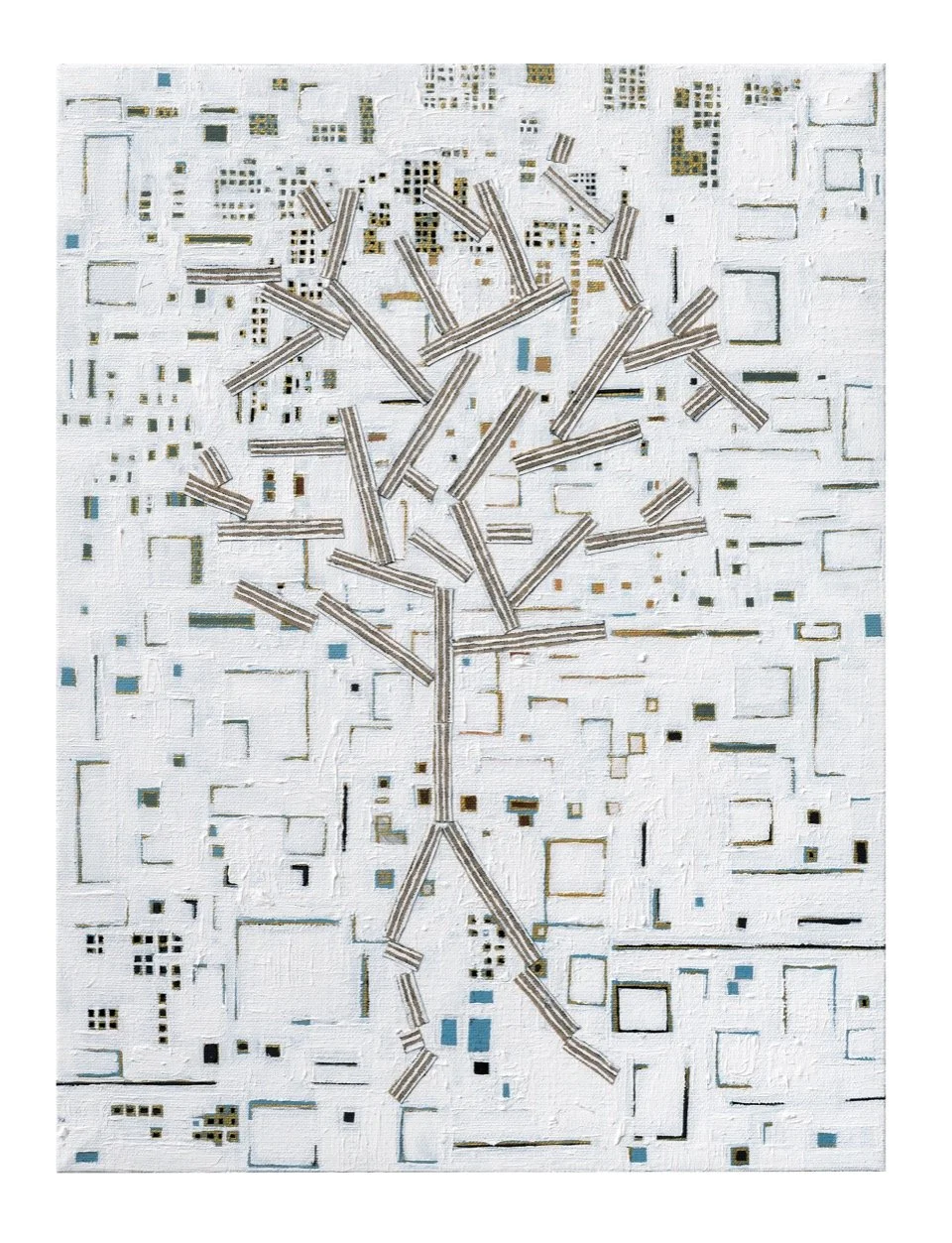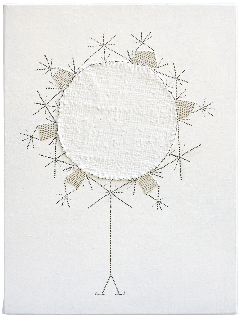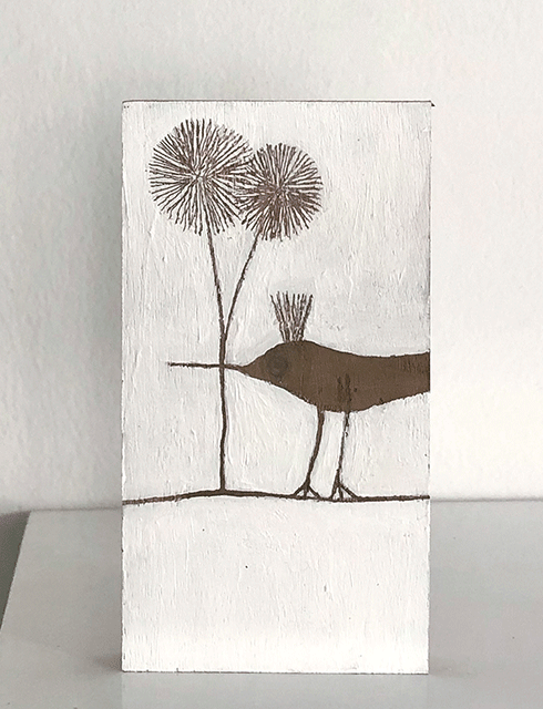 Nancy Monk’s playfully fresh and intelligently naïve approach to artmaking always surprises with its sheer joy and unaffected simplicity. Her images—often trees, flowers, or curious shapes sprouting stick-like feet—are combinations of paint and collage; miniature reproductions of her own works; and even an odd tiny cashmere sweater shrunken to an unbelievably small size. Many of her shows follow a single color theme, a la Yves Klein, or other formal constraints. Her work is included in the permanent collection of the Los Angeles County Museum of Art, and she has been the recipient of several National Endowment of for the Arts grants. Monk currently lives and works in Pasadena, California.